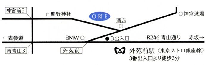 東京メトロ銀座線【外苑前】駅下車【北口3番出口】より
