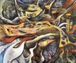 古い図録から初めて新制作展に入選した作品を見つけ、楽しかった夏季休暇中(当時公立小学校に勤務)の幼稚園の空教室を借りての制作(一週間) を思い出しました。今年は、30年振りの個展を開くに当たり、恒例になった制作の数を多めに、早目に取り組みました。特に変わった事の一つは、キャンバスの裏地の使用でした。アトリエにはキャンバスの切れっぱしが沢山あったのです。微妙に異なる裏キャンは魅力的でした。下絵の制作が始まると近くの家具造りの方に木枠の注文をして、キャンバスを張ります。寸法は下絵の大きさに合わせ少しずつ制作。小品制作は楽しかったです。個展には小品をもとに大作2点、中型2点、小品8点を新作。個限後の神奈川新制作展に大作1点。終了後は大作もう一点制作、新制作展に応募は3点。2点入選、おまけに会員推挙の栄誉を頂き有難うございました。