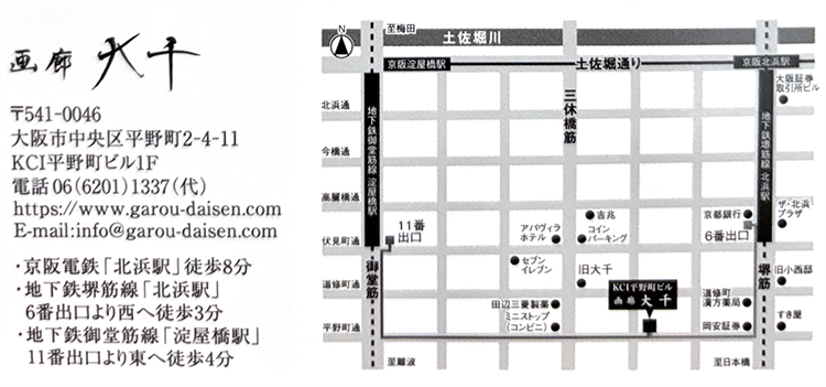 ■会 場 画廊 大千 〒541-0046 大阪市中央区平野町2-4-11 KCI平野町ビル1F TEL 06-6201-1337(代)