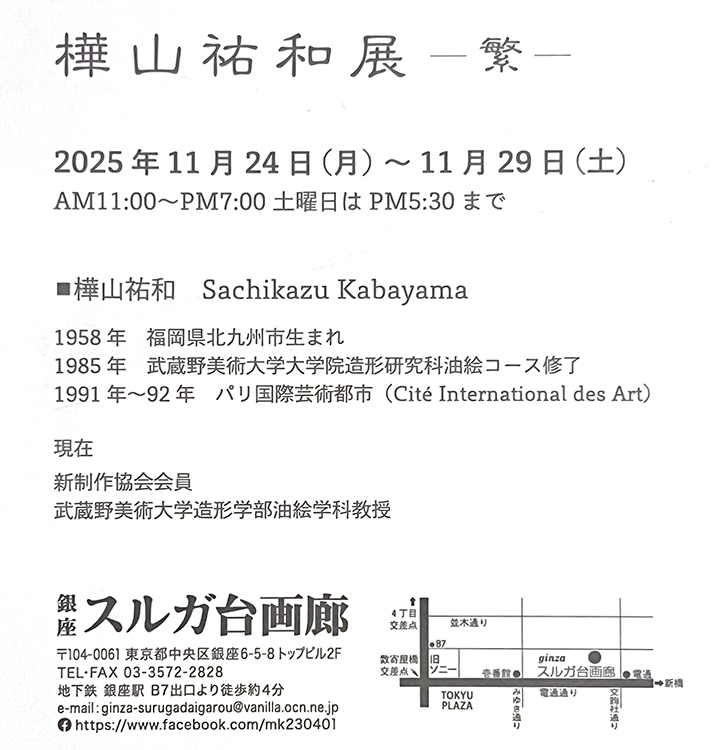 ■会 場 銀座 スルガ台画廊 (Facebook) 〒104-0061 東京都中央区銀座6-5-8 トップビル2F Tel・Fax 03-3572-2828 ○地下鉄 銀座駅 B7出口より徒歩約4分