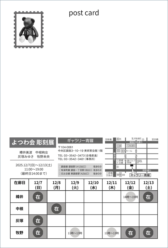 ■会 場 ギャラリー青羅 〒104-0061 東京都中央区銀座3丁目10−19 TEL 03-3542-348