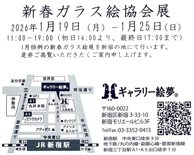 ■会 場 ギャラリー絵夢 〒160-0022 東京都新宿区新宿3-33-10 新宿モリエールビル 3F TEL 03-3352-0413