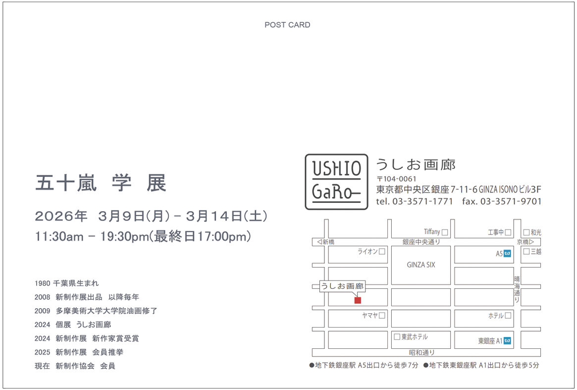 ■会 場 うしお画廊 〒104-0061 東京都中央区銀座7-11-6 GINZA ISONOビル3F tel. 03-3571-1771
