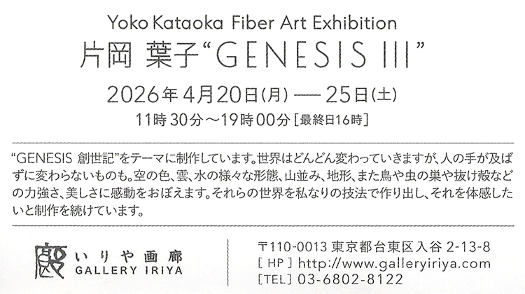 片岡 葉子 “GENESIS Ⅲ” Yoko Kataoka Fiber Art Exhibition